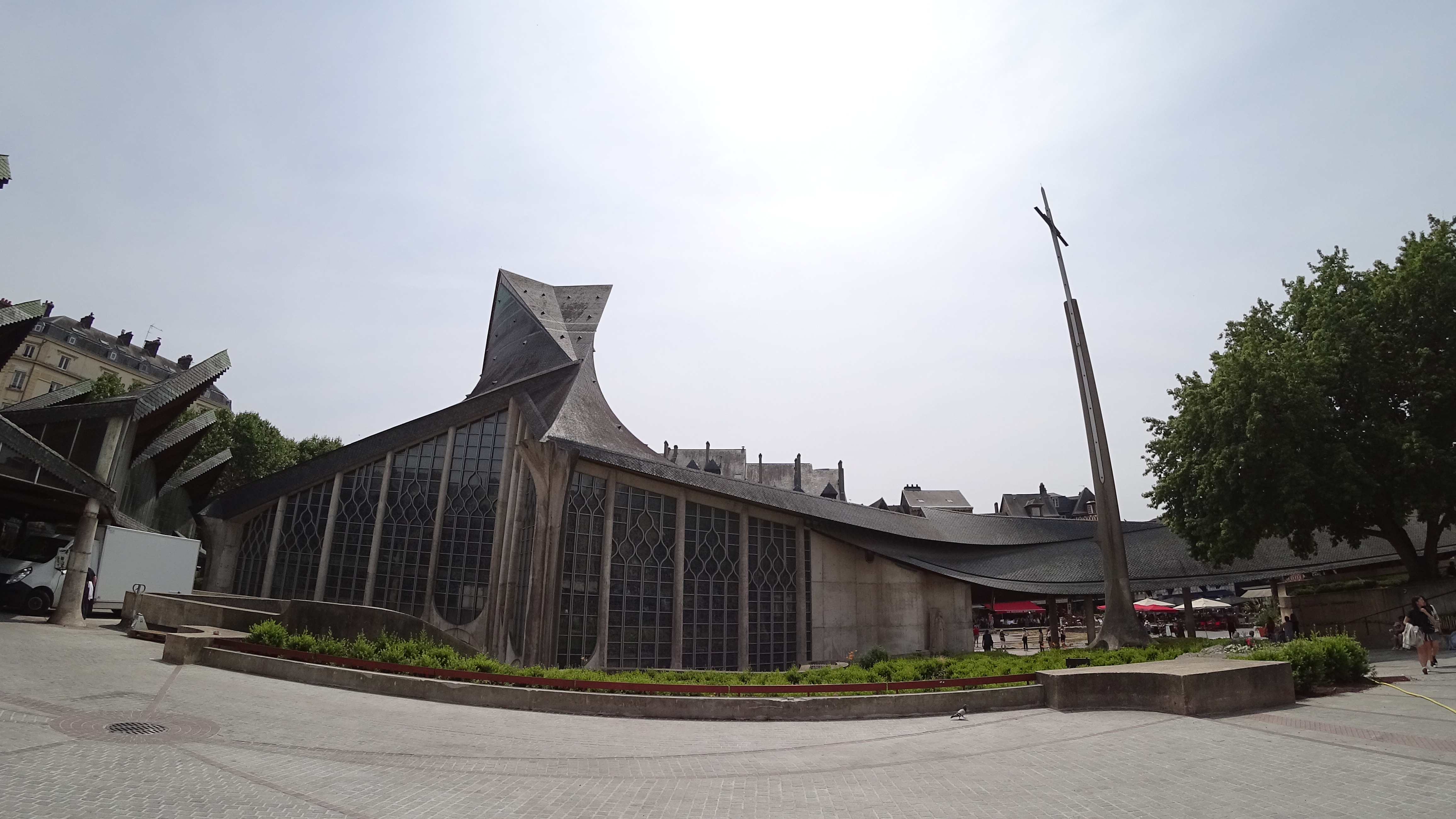 잔다르크가 화형을 당해 죽음을 맞이한 비유-마쉐 광장(Place du Vieux-Marché; 구시장 광장) 잔다르크를 기념하기 위해 1979년에 세워진 성 잔다르크 교회 (Église Sainte-Jeanne-d'Arc)와 광장,이 광장이 바로 1431년 잔다르크의 화형식이 거행된 곳이다.눈부시게 빛나는 하늘에 우뚝 솟은 십자가...,(잔다르크가 화형당한 곳에 십자가를 세웠다.)